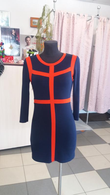 На s-m, длина платья - 72 см, ПОГ - 41 см, ПОТ -35 см, ПОБ- 41 см, длина рукава 46 см, сбоку застёгивается на молнии, цвет тёмно-синий с красными вставками