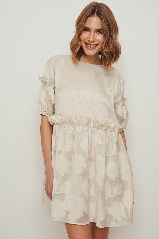Жаккардовая мини-платье с цветочным принтом на завязках NA-KD Данное платье имеет круглый вырез горловины, короткие рукава с эластичными манжетами, открытую спину с самозавязывающимся узлом, детали с оборками, цветочный дизайн с жаккардовым узором, широкую посадку, длину мини. Цвет белый, оливковый Состав Оболочка: 80% полиэстер, 20% полиамид. Подкладка: 100% полиэстер. Размер 36 Цена 550 грн По запросу реальные фото и замеры