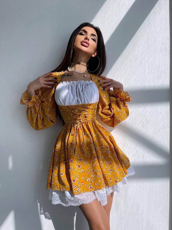 👆Цветочное платье, декорированное кружевом❤ Тканина софт, бавовна Размеры : S, М Страна производитель Украина 🇺🇦