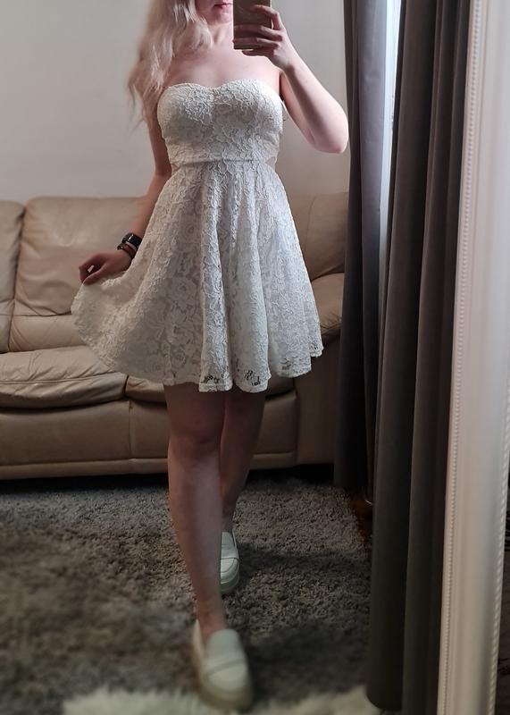 Белое кружевное платье без бретель, с подкладкой для объема в юбке.