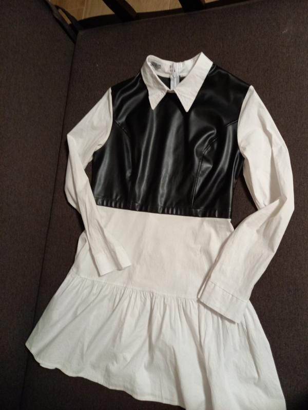 Платье размер ХС,С. Имитация рубашки с вставками кож.заменителя.