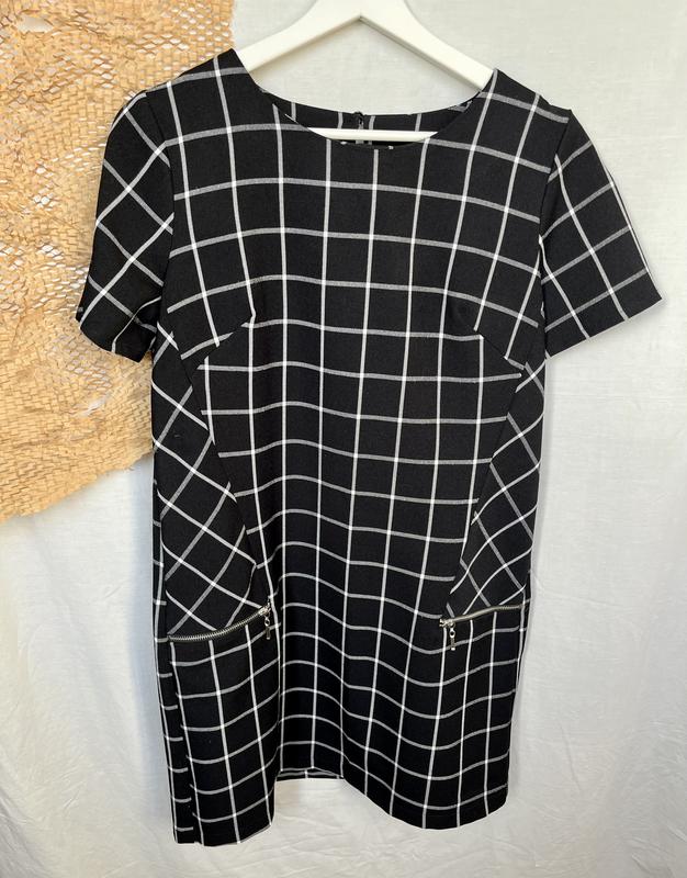 Платье прямого кроя h&m, принт клетка, два кармани-обмани, ззаду ґудзик, 🔖бирки срезанные, 📐размер ориентовочно М, замеры: -длина 85 см, -плечи 37 см, -пог 50 см, -поб 53 см, - длина рукава от плеча 21 см, ❕имеет дырку спереди справа (нужно зашить), в носке за счет принта - не будет заметно (последнее фото), 📦Отправляю перевозчиками вкрпоштой или новой, безопасной или по полной подписке 📸фото на теле на сейчас - не делайте 🔄возврат или обмен — нет