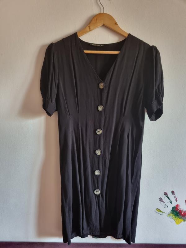 Черное платье, летнее, материал - вискоза, без дефектов, приталенное на рост 161см до середины бедер. Эффекты отсутствуют. Турция