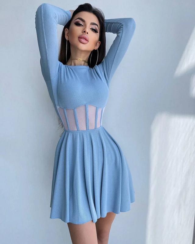 Приталенное платье с корсетной вставкой и юбкой-солнцем 5516 🎩 ▫️ цена: 780 грн ▫️тканина: трикотаж рубчик ▫️размер: S и М