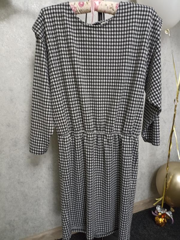 Платье в идеальном состоянии, на спине застегивается на пуговицу, талия на резинки. Бедра 48,ркав 48, длина 91, но учитывайте, что при одевании следует в талия ровный,так как верх должен быть с напуском.