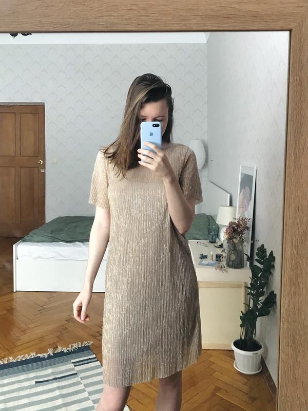 Сукня з підкладкою Бежевого кольору з блискітками (золотисті) Довжина 89 см Тканина тягнеться ПОГ 45 см ПОГ підкладки 41 см ПОС 52 см ПОС підкладки 47 см Плечі 40 см Підкладка іде по тілу, а сама сукня сидить вільно ❗️Стан чудовий, окрім одного нюансу - на підкладці на одній зі шлейок трохи розійшовся шов (див. останнє фото, при носці взагалі не видно)