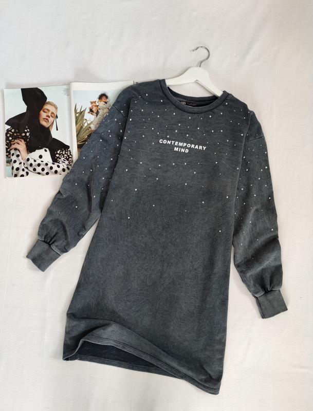 🌿сіре плаття-світшот від Zara вільного крою Розмір:S Заміри:ПО грудей 48 см, довжина 90 см,рукав від горловини 72 см