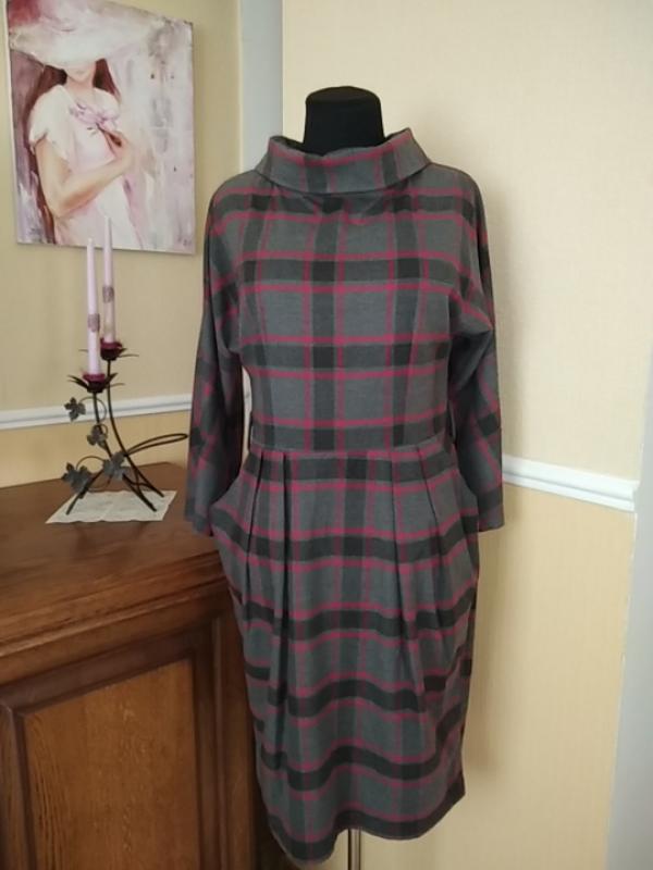 (ПЛ701)Платье в клетку с карманами и рукавом трансформер. Есть петли для пояса. Цвет Серый с красным. Пр-во Турция. Размер указан 40, носила на М, смотрите замеры. Замеры: плечо с рукавом 55см, подворачивается до 36см ширина рукава внизу15см ПОГ 47см ПОТ 40см ПОБ 52см длина 96см Отправлю Новой или Укрпочтой после полной оплаты. Обмена и возврата нет