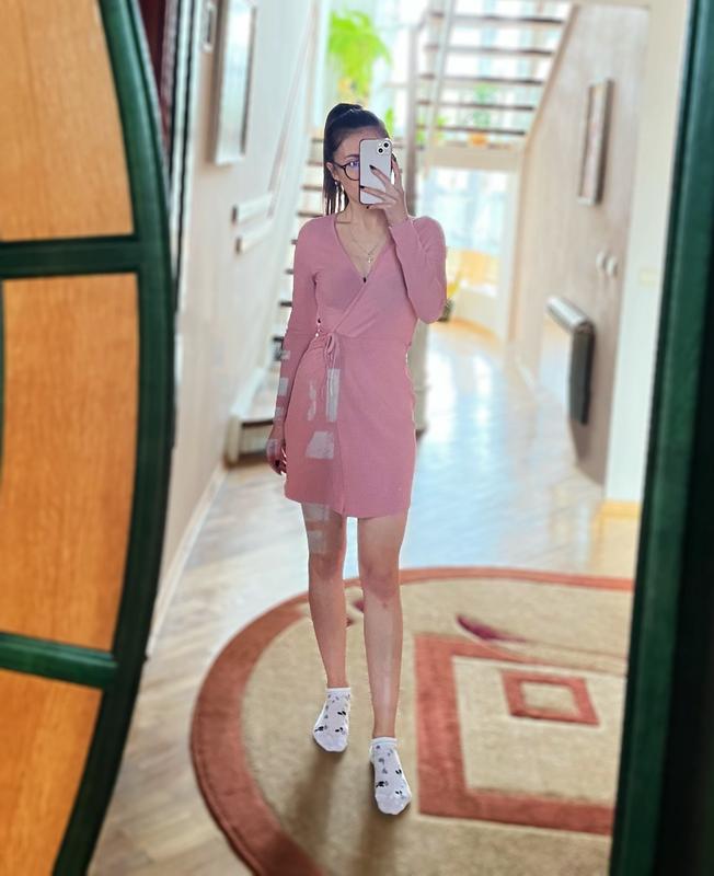 Нежно-розовое платье на запах. Актуальной длины. Отлично подойдет под кроссовки и косух, а также к грубым ботинкам и пальтечка. 😎
