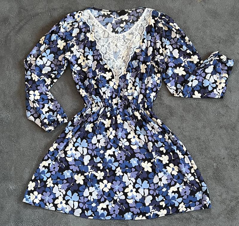 платье в цветочный принт с кружевом на горловине и резинкой на поясе