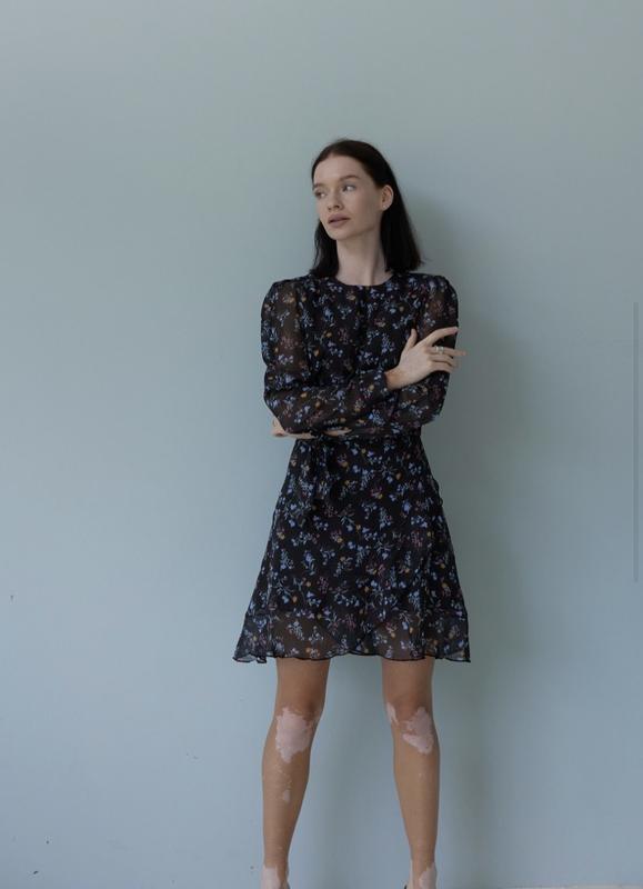 Дуже ніжна сукня, довжина 86см, талія 34, є підклад. Застібка сзаду