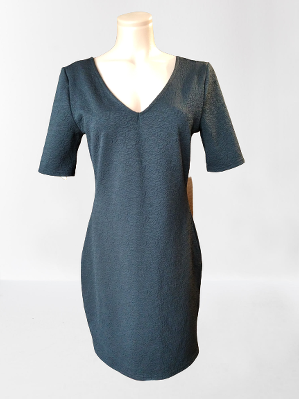 Роскошное черное платье по фигуре из крепового трикотажа. Ткань довольно плотная, тянется. Замеры без растягивания: ПОГ 45, ПОТ 40, ПОБ 48, длина от плеча 88, рукав 28 95% полиэстер, 5% эластан