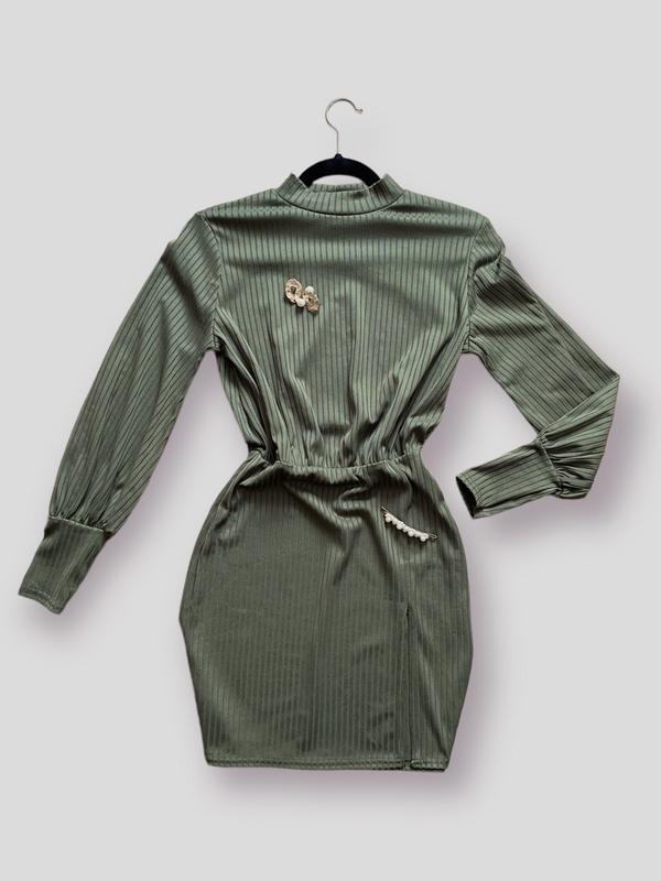 Длина – 81 см ПОГ – свободно ПОТ – резинка 16 см в спокойном состоянии ПОБ – 20 см Высота разреза – 20,5 см От талии до низа – 43 см Длина рукава – 58 см, из них манжета – 12 см. Ткань хорошо тянется Рост до 170 см (иначе, разрез будет до линии белья), на бедра до 95 см (за счет разреза) Отсутствуют бумажные бирки, но платье новое, не ношеное, без нюансов. Размер S-M.