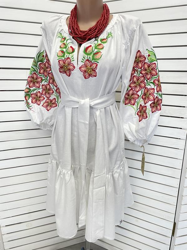 Платье из натуральной ткани, машинная цветочная вышивка, пояс в комплекте. Пилий подойдет для беременных. Сяде на с-м