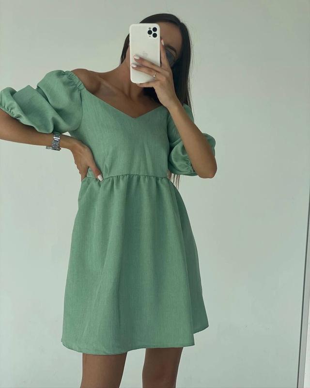 Тканина: льон габардин Размер: 42-44 и 44-46 Цвет: оливка, голубой Красивое кукольное платье из легкой дышащей ткани😍 Завышенная свободная талия, длину рукавов можно регулировать с помощью резиночки🔥 • ФОТО РЕАЛ ПАРАМЕТРИ: 42-44 / 44-46 ДОБАВЛЕНИЕ от плеча 85 см / 85 см Рукав 40 см 40 см ОГ 84-89 см / 90-95 см OT 78 см / 85 cm