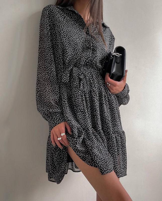 Мод. 9016 Размеры: 42-44, 46-48 Тканина: софт Цвет: черный Нежное и женственное платье в горошек! Спереди платье застегивается на пуговицы