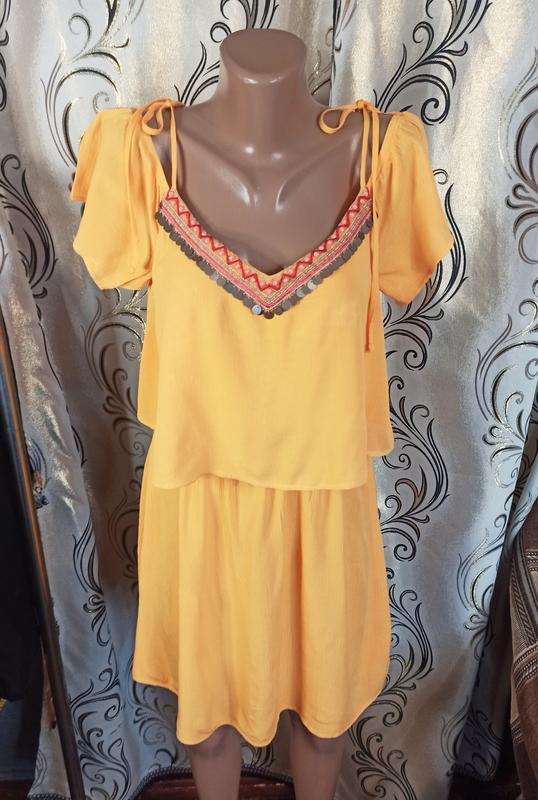 Літня легка сукня з віскози george Розмір - UK 10 EUR 38. Заміри: - напівобхват грудей 49 см, - напівобхват талії 36-42 см, - напівобхват стегон 59 см, - довжина 92 см. Склад: 100% віскоза Талія на резинці У стані нової речі