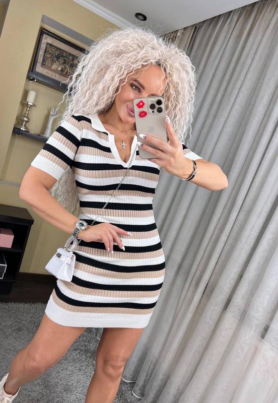 New collection 🫐 платье в полоску “Поло” с воротничком и коротким рукавом 3 кольори •Размер универсал 42-46 Акрил
