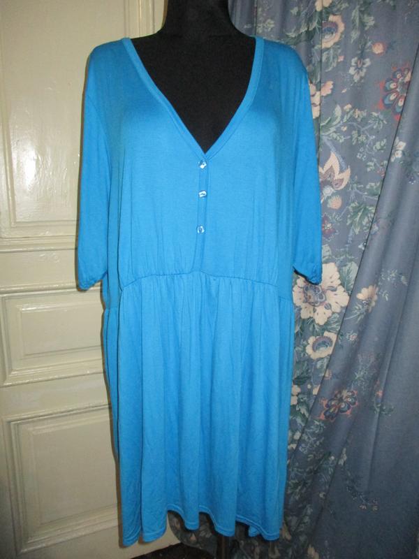платье голубого цвета.хлопок.ПОГ 80.ПОТ 64.на талии резинка.ПОБ 83.длина 95см