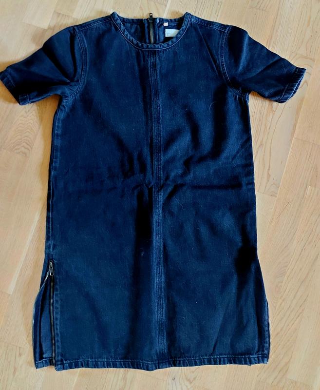 Платье короткое, свободного кроя. По бокам снизу молнии. Джинс плотный, не тянется. Стан - идеальный. Производство Турция. Размер M, S.