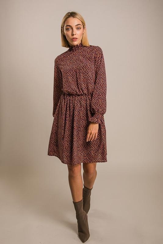 Очень красивое, нежное платье. Шифон 50% вискоза плюс полиэстер Классно смотрит с массивной обувью и кожанкой, также подойдет и под каблук Размер М Длина 95 см Ширина между подмышками 48,5 см Ширина между лопатками 36,5 см Рукав по низу с манжетом 63 см Талия на резинке, тянется до 50 см