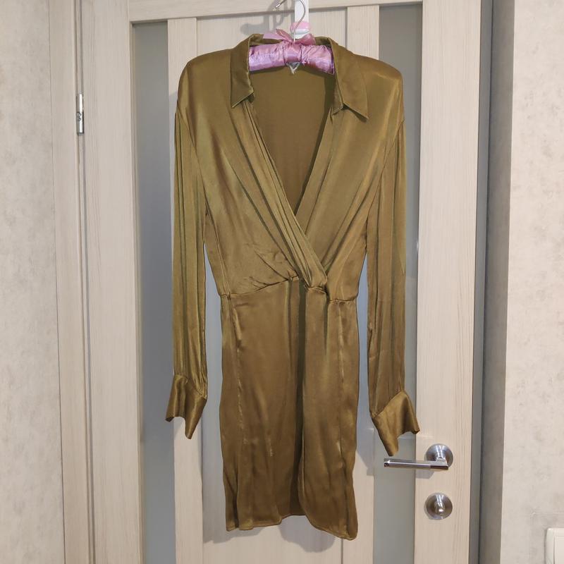 Платье HM на запах, отличный оливковый цвет и приятная ткань. Нажаль бирки срезала. состояние идеально
