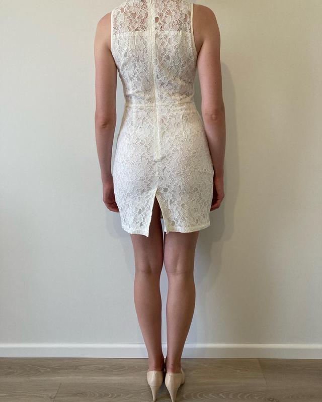 Сукня молочна, мереживна, на бірці розмір L, по факту - S . Заміри виробу: довжина 86 см, талія 35 см, стегна 46 см, груди 41 см. . Параметри моделі: 88-71-99, зріст 175 см, сукня сидить дуже тісно Всі виручені від продажу кошти підуть на користь ЗСУ