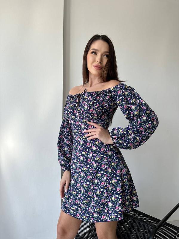 Арт 1464-336 Сукня Цена 560 грн Тканина: Софт Размеры:42-44,44-46 Кольори: як на фото Фото реальные Романтичное платье мини в цветочный принт, на груди кулиска регулируется.