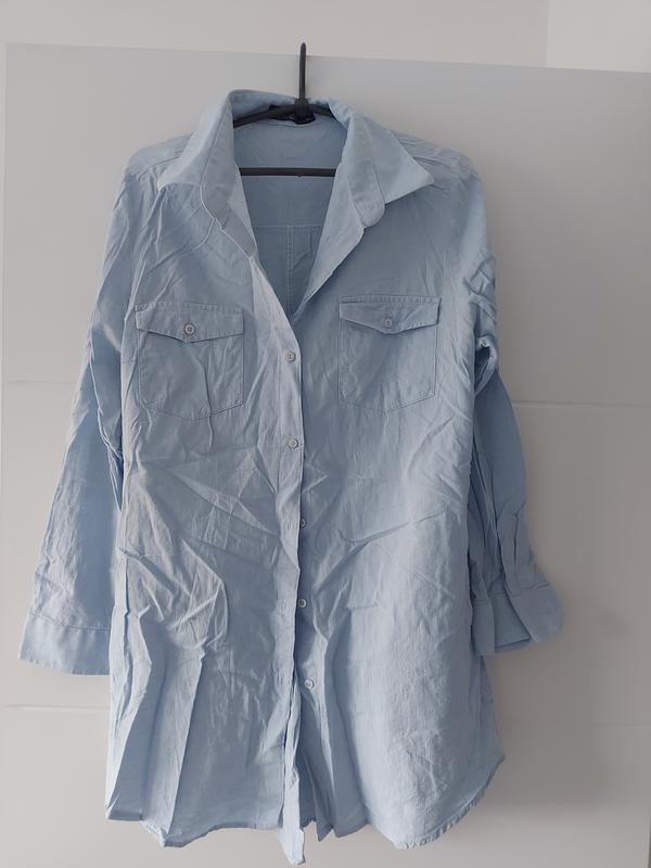Платье-рубашка Polo. Рукав подкачивается делается 3/4. Есть карманы. Перед и зад идет длиннее, округлено. Длина от плеча 80 см по длительной точке. Длина рукава 60 см. ПОГ 51 см.