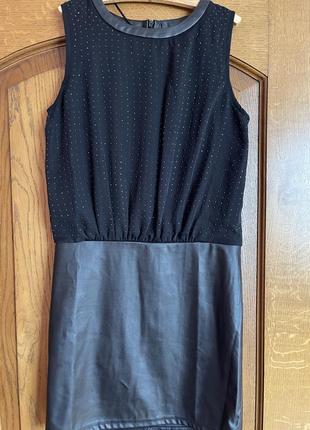 Стильное платье. Низ из экокожи. Верх шифоновый