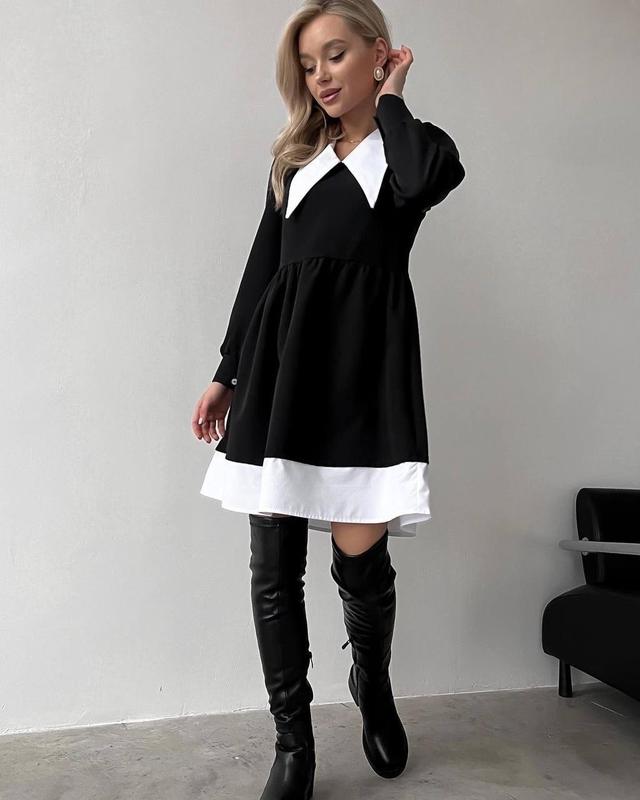Арт 1496-033 Сукня 🔹Размеры: 42-44, 46-48 🔹Цвет: черный с белым 🔹Тканина: костюмка+котон 🔹Цена 700 грн. Платье в стиле Wensday влюбляет с первого взгляда. Белые вставки - обманки. Создано с вдохновением