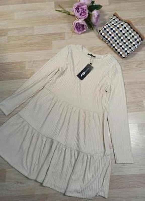 Красивое ярусное платье Amisu. Длинный рукав. Нове.Є паперова етикетка. Текстурная ткань,красивый молочный цвет.. П.о.г. 44 см. тянеться.Довжина 88см.Тянеться