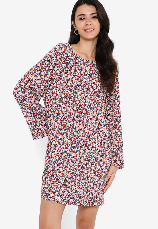 Размер XL Короткое прямое платье из тканого материала с вырезом-лодочкой и вырезом сзади на обтянутой пуговице сзади у горловины. Длинные широкие рукава реглан. Без подкладки.