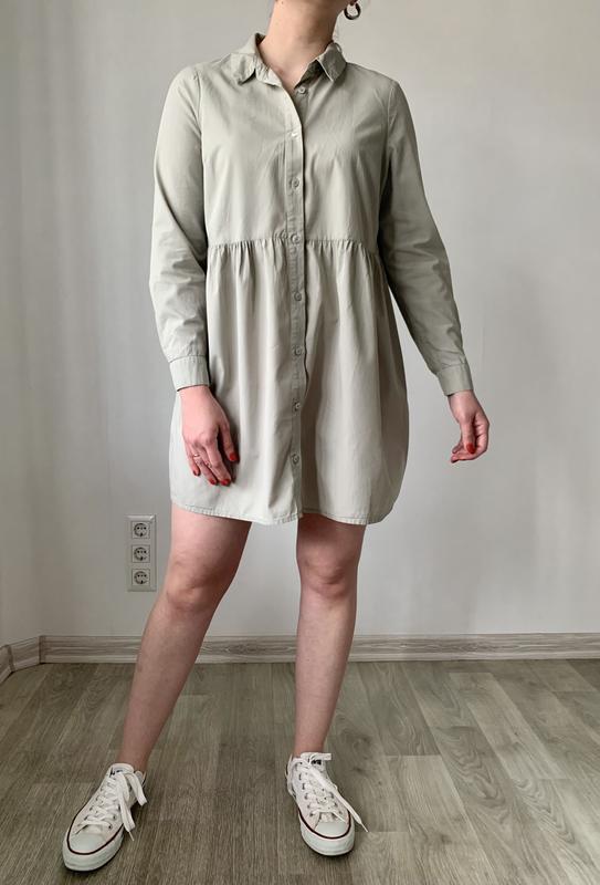 Сукня-сорочка у фісташковому кольорі😍 Розмір Л, у складі 100% катон Довжина 81 см, напівобхват грудей 52 см Стан ідеал