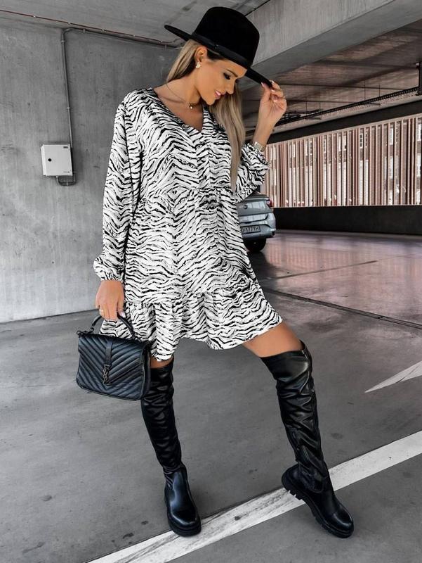 ☑️Модель 3171 ☑️Ткань: Софт принт ☑️Кольори: чорна-біла ☑️Размеры: 42-44; 46-48 Трендовое платье в стиле мини с пуговками спереди ❤️