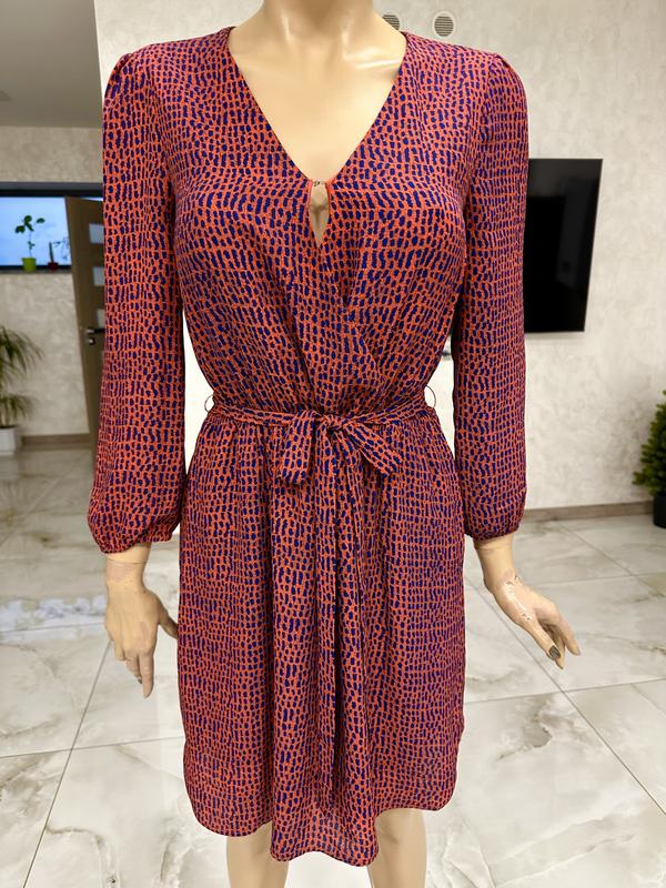 Очень красивое платье, внутри на подкладке, под поясок. Состояние идеальное. Размер указан С, хорошо будет и на М. Замеры: длина 92см, пог 45см, пот 33см( тянется на резинке), поб 55см, рукав 53см