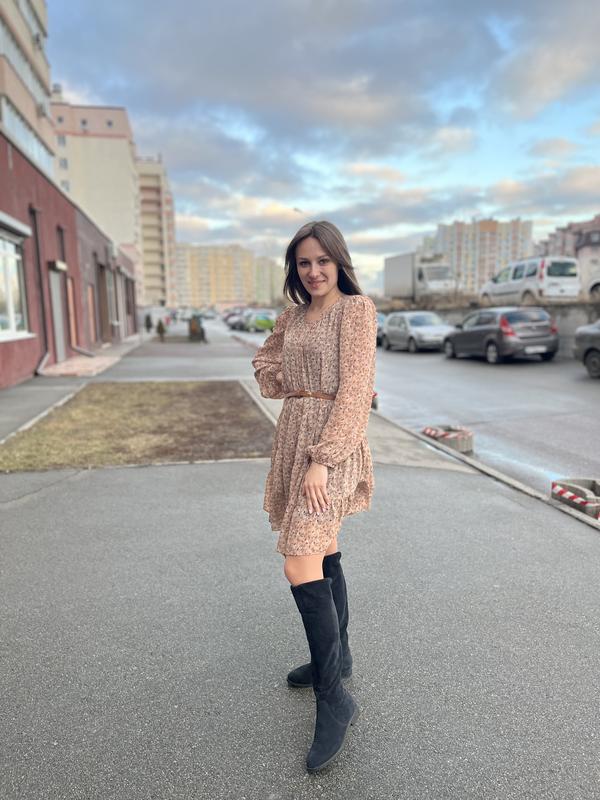 Платье было одето один раз, можно сказать новое. Под низом - черная подкладка, пояс в комплекте. Размер больше на М, но и на S тоже отлично (фото на мне)