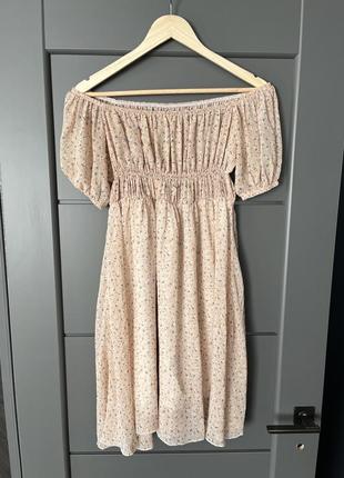 Легке квіткове плаття, ідеальне на жарку літню погоду. Одягнула 1 раз. Напівокружність резинки в зібраному вигляді 30см. Довжина 78 см. Спускається на плечі. Є підкладка, не просвічується.