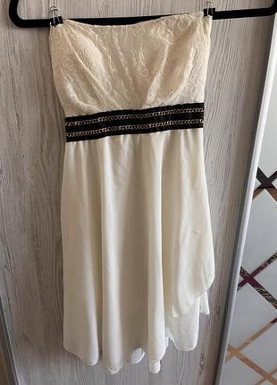 Сукня біла коктейльна в довжині міні. Є підкладка у спідниці та вставки в зоні декольте. Ні разу не одягалася.