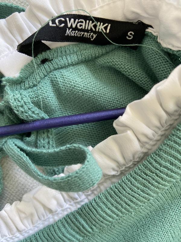 Трикотажне поаття, туніка, обрамлене білою натуральною тканиною, низ можна відпороти без будь яких наслідків для виробу. ПОГ 46 см, ПОБ - 57см, довжина 72см+10см біла тканина. Приємний бірюзовий колір.