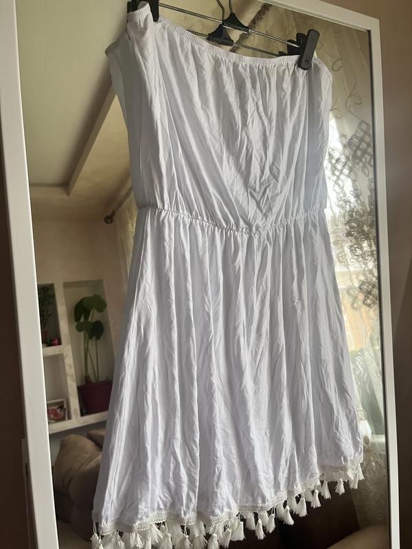 Літня сукенька, тоненька тканина, може просвічувати. Відкриті плечі. Тягнеться Розмір М Заміри Резинка зверху 38 см, талія 30 см на резинці, довж без китичок 60 см