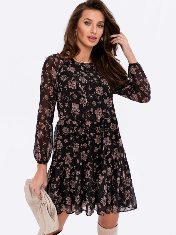 Короткое шифоновое платье с длинным рукавом реглан. Модель отрезная по талии с широким воланом снизу. Предусмотрена подкладка. 📍Артикул: 42639/3 👗Размеры: 44, 46, 48 🪡Материал: шифон мо