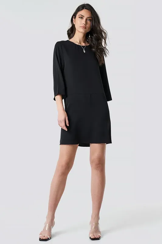 Чорна міні сукня від NA-KD Склад : 100% поліестер Сукня має круглий виріз, застібку на спині, напіврукави та вільний крій. Це плаття чорного кольору. Розмір : M Вартість :520грн