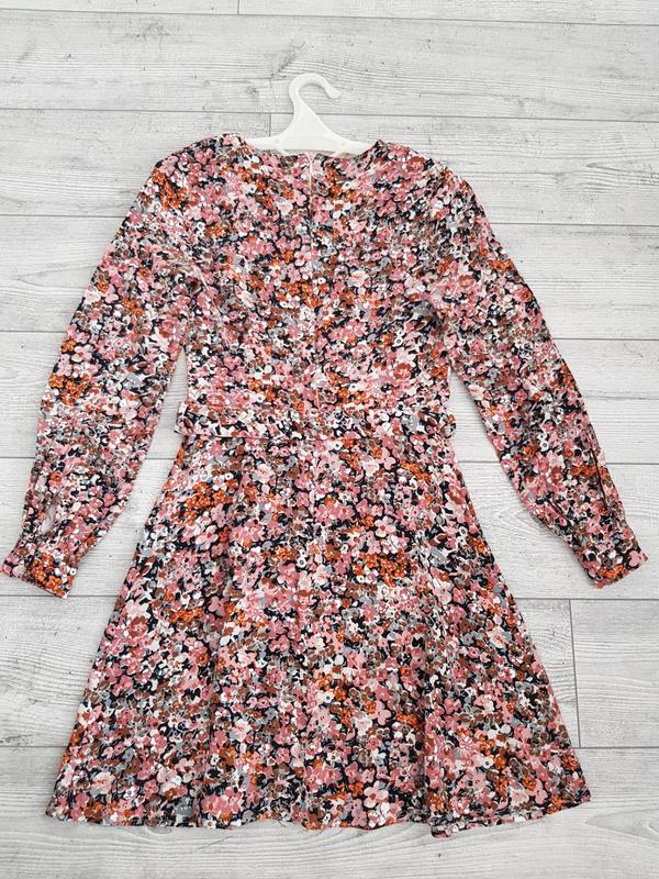 качественное эффектное натуральное цветочное платье с пояском Хs/s Загал длиж 82 см Длинное рукава 56см ПОГ 38см ПОТ 32см Турция