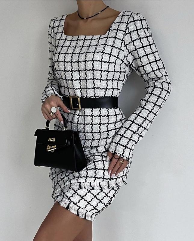 Платье весна Ткань клетка-твид турецкий