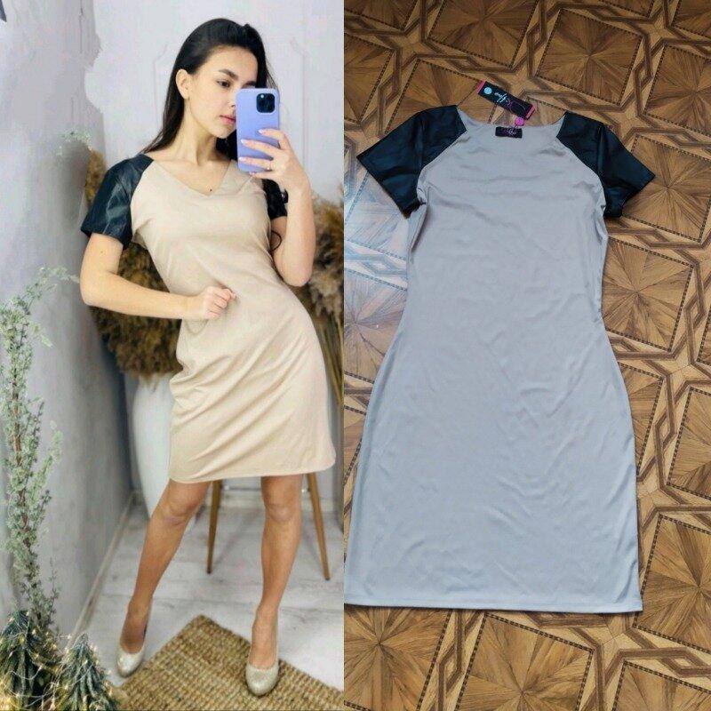 Чарівна сукня як на кожний день, так і на вихід, виробник SK House - молодий українский бренд стильного одягу. В наявності р. М (рукав беж) та р. Л (рукав чорний). Щільна м,яка тканина формує гарний силует. Рукавчик з еко-шкіри. Дивіться заміри! р. М - Пог - 42 см тягнеться до 49 см - Пот - 33 см тягнеться до 40 см - Поб - 43 см тягнеться до 50 см - рукав- 14 см - довжина - 90 см р. Л - Пог - 45 см тягнеться до 52 см - Пот - 36 см тягнеться до 43 см - Поб - 47 см тягнеться до 54 см - рукав- 15 см - довжина - 92- 93 см