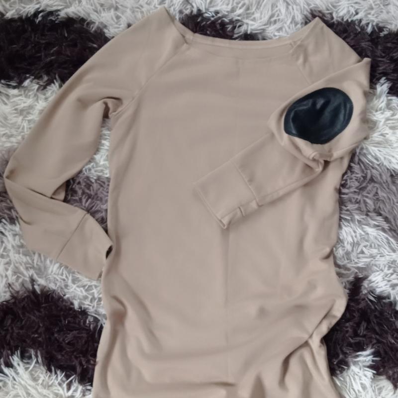 Очень красивое и стильное платье.Размер 50/52 красиво тянется.На рукавах есть отверстия для больших пальцев.