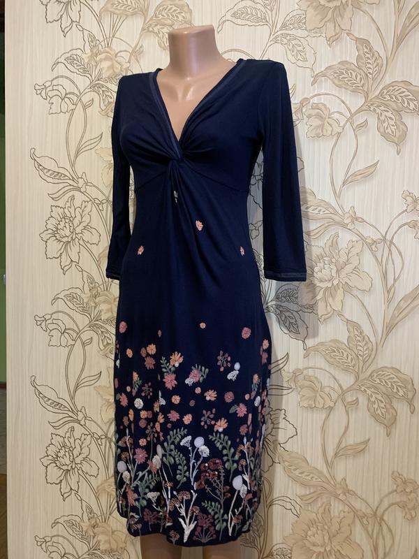 Трикотажное платье с принтом 3/4 рукав 45 см Вырез 24 см Ог 41 см От 36 см Длина 100 см