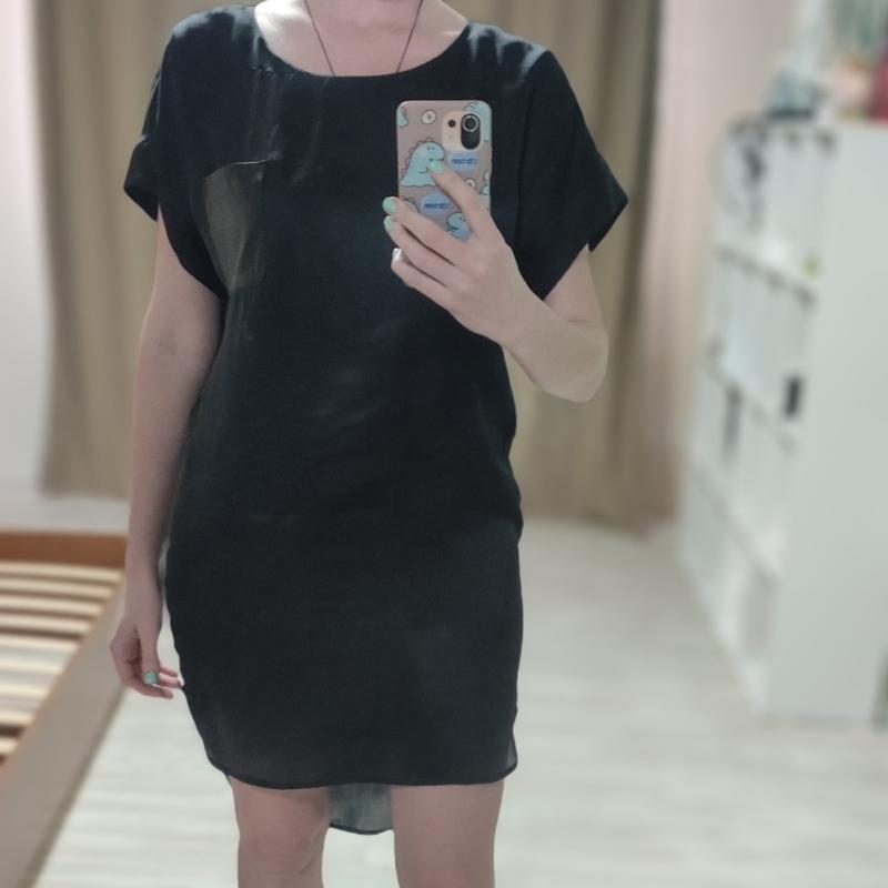 легкое стильное платье с карманом кожум,можно носить так,можно с пояском. Атласная,идеальная на лето.