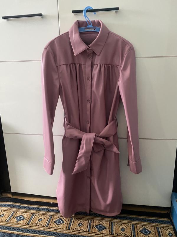 Платье-рубашка с поясом в пудровом цвете из эко кожи, размер М.